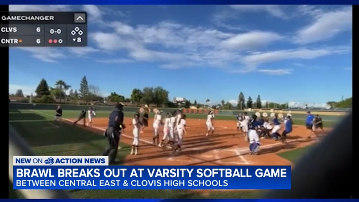 A big fight broke out after the Central East High Bengals defeated the Clovis High Cougars in a tight softball game in Fresno.
